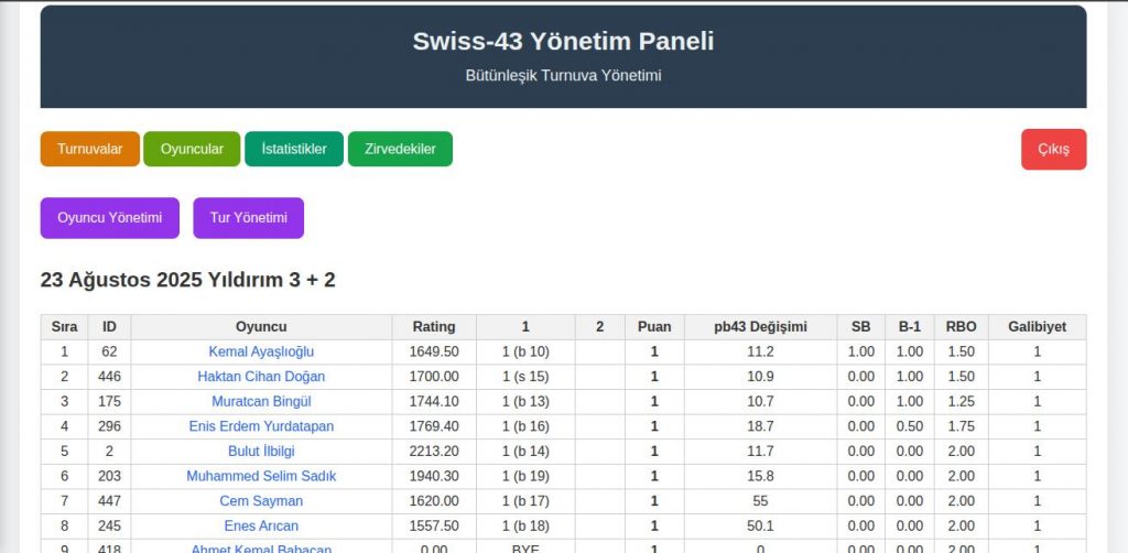 • İsviçre Sistemi, Döner Sistem ve Çift Tur seçenekleri.